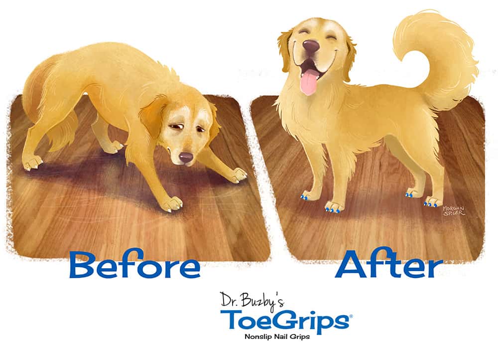 ToeGrips, kleine Gummiringe die Hunden auf die Krallen aufgezogen werden, geben sofortigen Halt und Zutrauen. Ein ebenso einfaches wie geniales Produkt für alle gangunsicheren Hunde, älteren Hunde und Hunde mit Handicap.
